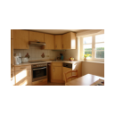 - Küche mit Kühlschrank, Kaffeemaschine, Toaster, Wasserkocher, Spülmaschine, Backofen und Ceran-Kochfeld